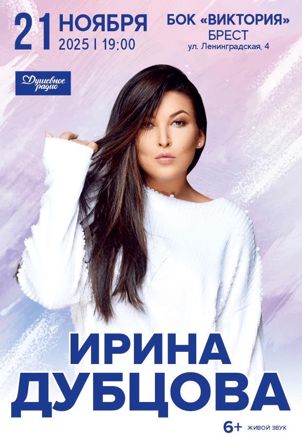 Она — поэтесса, композитор, вокалистка, чьё творчество давно стало частью личных историй миллионов людей. И вот теперь — живой концерт в Бресте, где прозвучат знакомые и близкие каждому композиции: «О нём», «Люби меня долго», «Не целуешь», «Я люблю тебя до луны», «ФАКТ», «Кому? Зачем?» — и новые песни, в которых так же много души и правды.