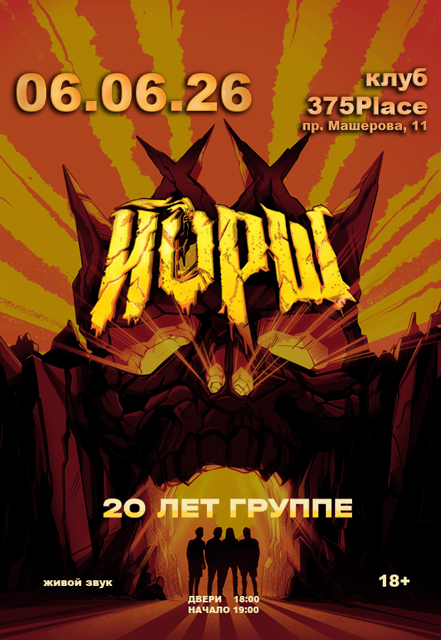 6 июня в клубе «375 Place»( двери 18:00, начало 19:00) группа Йорш отыграет большой юбилейный концерт.