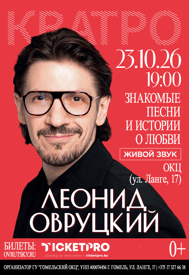 Возврат билетов по инициативе покупателей на данное мероприятие осуществляется до 21 октября 2026 включительно. Инфолиния по возврату билетов: +375 29 693-59-35 (ежедневно с 9.00 до 20.00).