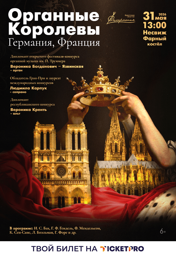 31 мая в 13:00 приглашаем всех жителей и гостей г. Несвиж в Фарный костёл наконцертную программу «Органные Королевы - Германия, Франция», где встретятся композиторы двух самых органных стран мира, не тускнеющий блеск барокко и бескрайний полет романтизма. Барокко и романтизм – прекрасное сочетание, позволяющее публике ощутить неисчерпаемые возможности Короля инструментов. Гениальное наследие Баха – точка отсчета в истории органного искусства, оказавшее влияние на композиторов разных стран и эпох.