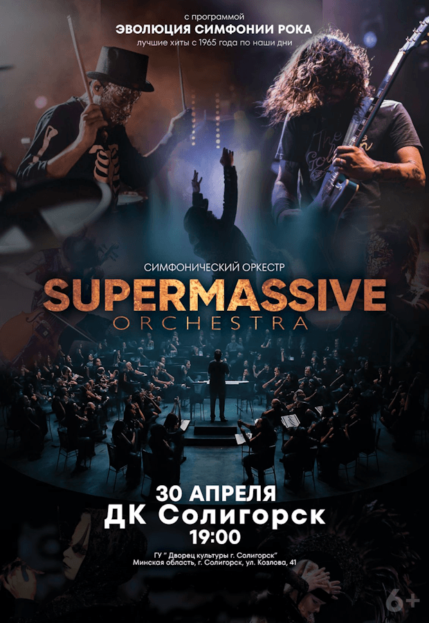 ГУ "Дворец культуры г. Солигорска", 30 Апреля 2026 года — Эстрадно-симфонический оркестр Supermassive Orchestra объявляет о старте тура с масштабным проектом Rock Evolution (Эволюция симфонии рока).