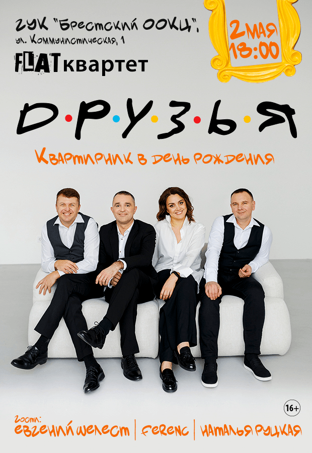 2 мая в концертном зале ООКЦ группа "FLAT квартет" с программой "ДРУЗЬЯ".