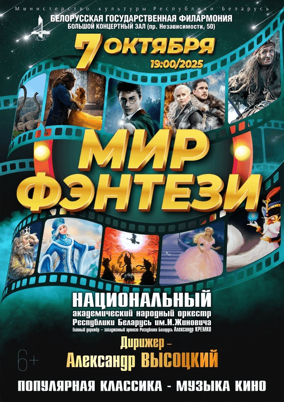 Окунуться в романтическую атмосферу, вспомнить захватывающие и драматические сюжеты любимых фильмов будет возможно 7 октября в Большом зале Белгосфилармонии. В концерте «Мир фэнтези» Национального академического народного оркестра Беларуси им. И.Жиновича – мировая классика М.Мусоргского и Э.Грига, Дж.Россини и М.Глинки будет переплетаться с саундтреками к современным шедеврам мирового кинематографа («Гарри Поттер», «Парк юрского периода», «Красавица и чудовище», «Игра престолов» и др.).