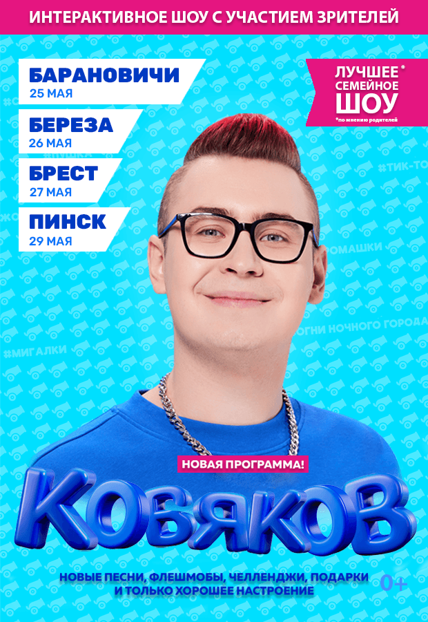 25 мая в 18:00 во Дворце культуры г. Барановичи, ул. Кирова, 62 состоится невероятное Шоу «Пушка» известного блогера Влада Кобякова!