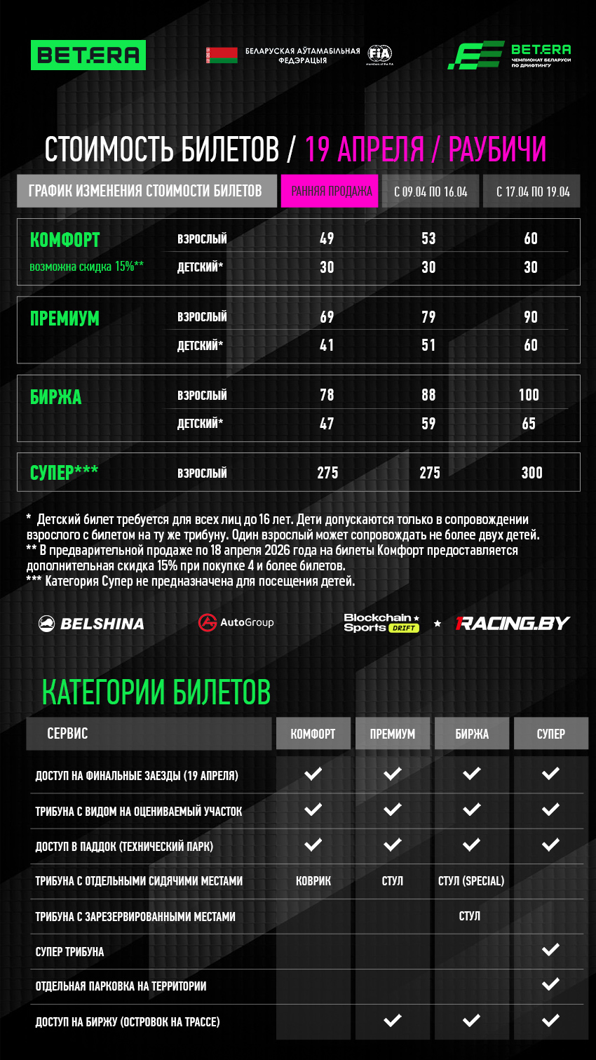 - открытый паддок (технический парк) - доступен для всех категорий билетов