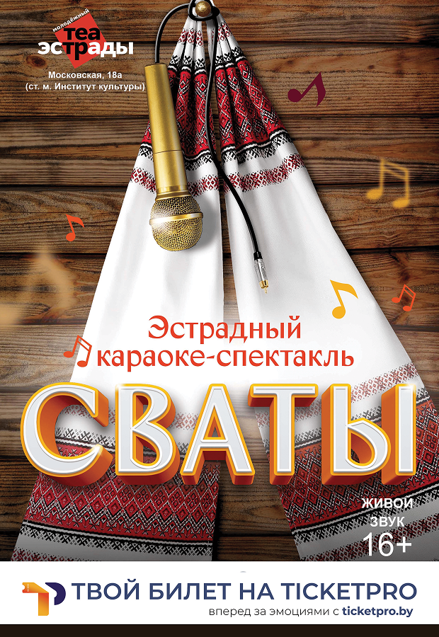 Караоке-спектакль «Сваты» — это необычный и яркий формат эстрадной постановки, объединяющий живое театральное действие и интерактивное участие зрителей. В ходе спектакля прозвучат известные белорусские песни как из народного фольклора, так и современные хиты, которые зрители могут вместе с артистами исполнять в формате караоке. Это создаёт неповторимую атмосферу дружеского застолья, где все — как родные.