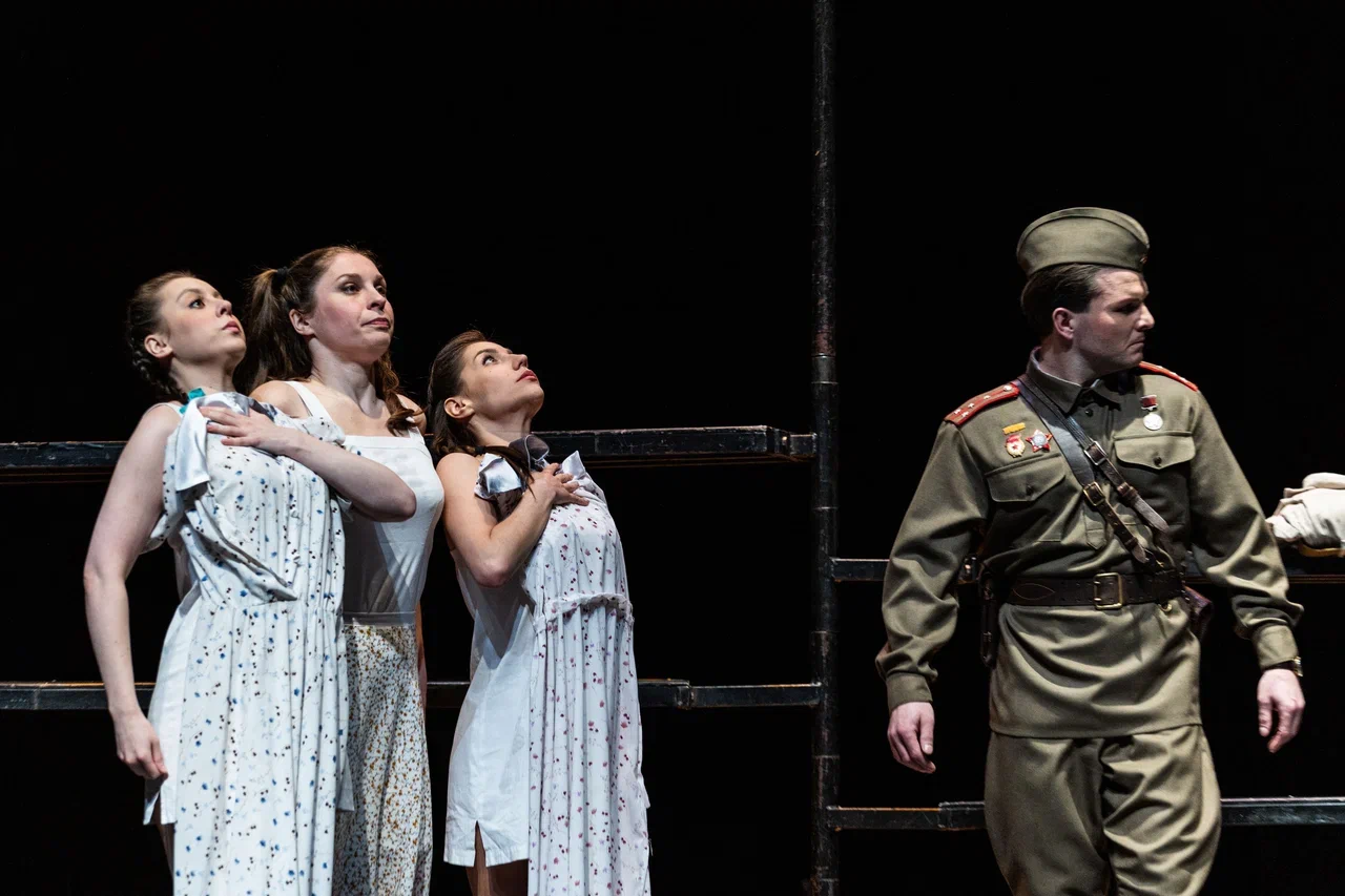 Действие пьесы происходит в 1944 году - начало Белорусской наступательной операции. Фронтовик-разведчик капитан Михасев получает под свое командование спецразведгруппу из четырех бойцов для выполнения особо важного задания. Встреча с бойцами повергает Михасева в ужас. Перед ним - четыре вчерашние школьницы. Это они должны быть заброшены в тыл врага. Капитан Михасев уходит с девчатами на спецзадание как отец с четырьмя дочерьми. При всем трагизме ситуации драматическая баллада «Не покидай меня…» - спектакль светлый, романтичный, чистый.