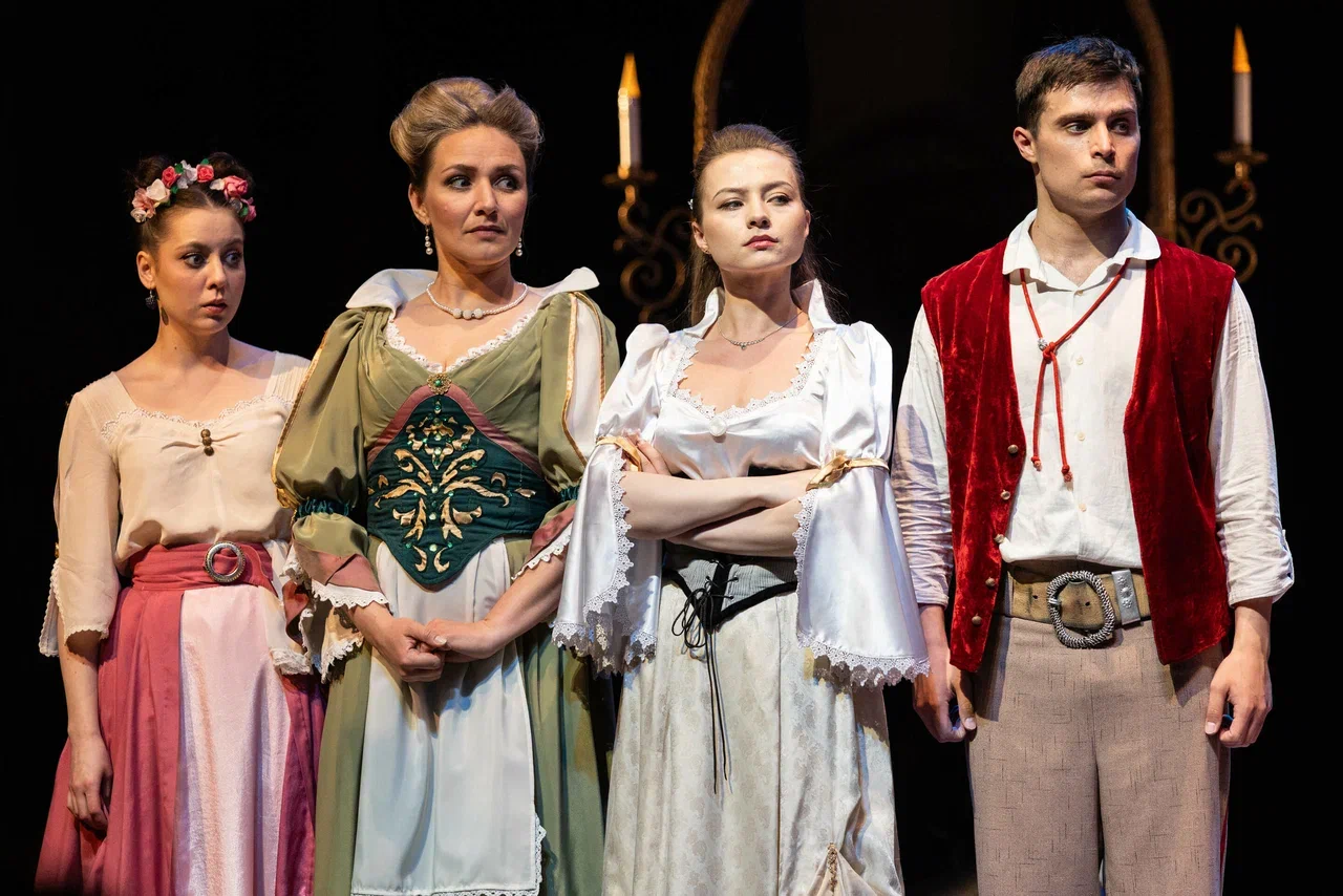 классики. Театр представляет зрителю своё прочтение этого гениального произведения. Пьеса претерпела существенные изменения, современную переработку, которую осуществил известный драматург А. Дударев. При этом фабула и основная идея Лопе де Вега бережно сохранена и даже развита. Спектакль о трагический любви со счастливым финалом, об истинном благородстве, о несовместимости любви и лжи, даже во имя спасения.