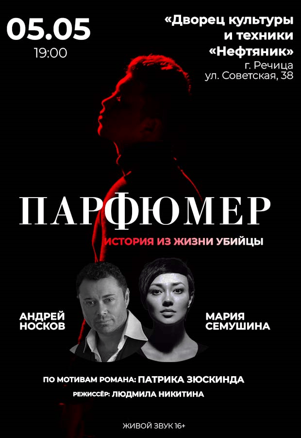 Продюсер Дмитрий Дорошенко, режиссер Людмила Никитина, актер Андрей Носков, хореограф Мария Семушина, режиссер по свету Мария Колоколова – команда, которая создала уникальный спектакль «Парфюмер» по мотивам скандального романа.