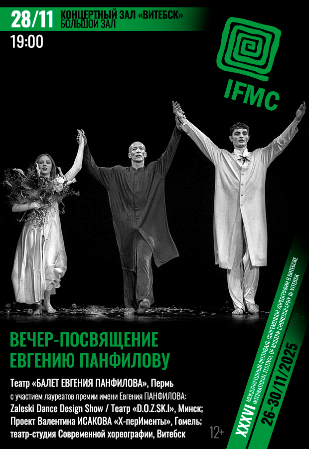 Это особенный вечер на IFMC будет посвящен легендарному хореографу Евгению Панфилову. В этом году ему бы исполнилось 70. Вас ждёт живой диалог с наследием Мастера, воплощенный в пластике его последователей.