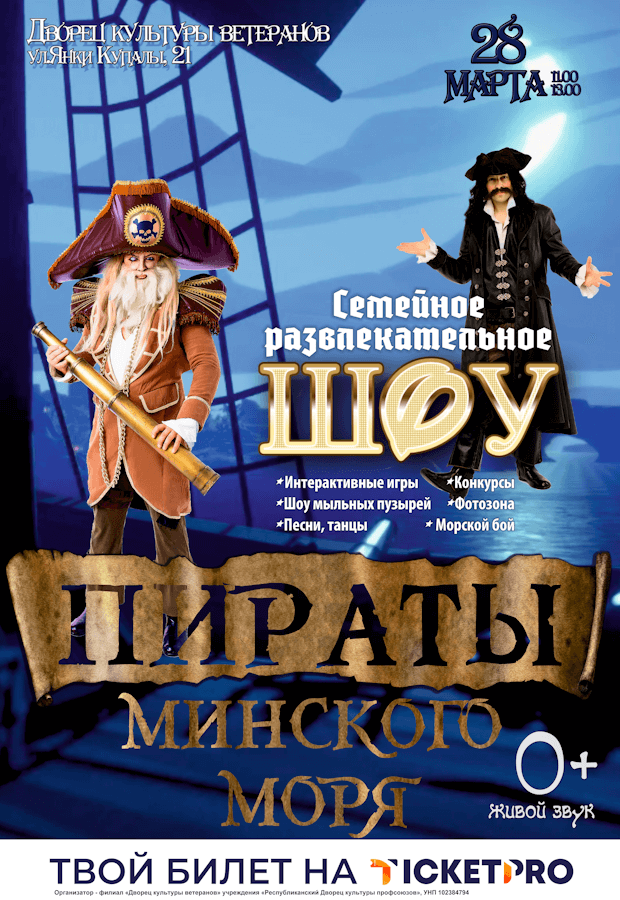 Интерактивное шоу "Пираты Минского моря", запланированное к проведению 28.03.2026 в 11:00 ОТМЕНЕН.