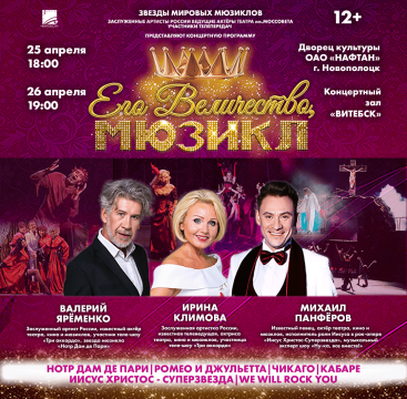 Концерт «Его Величество, мюзикл» пройдёт в Новополоцке и Витебске