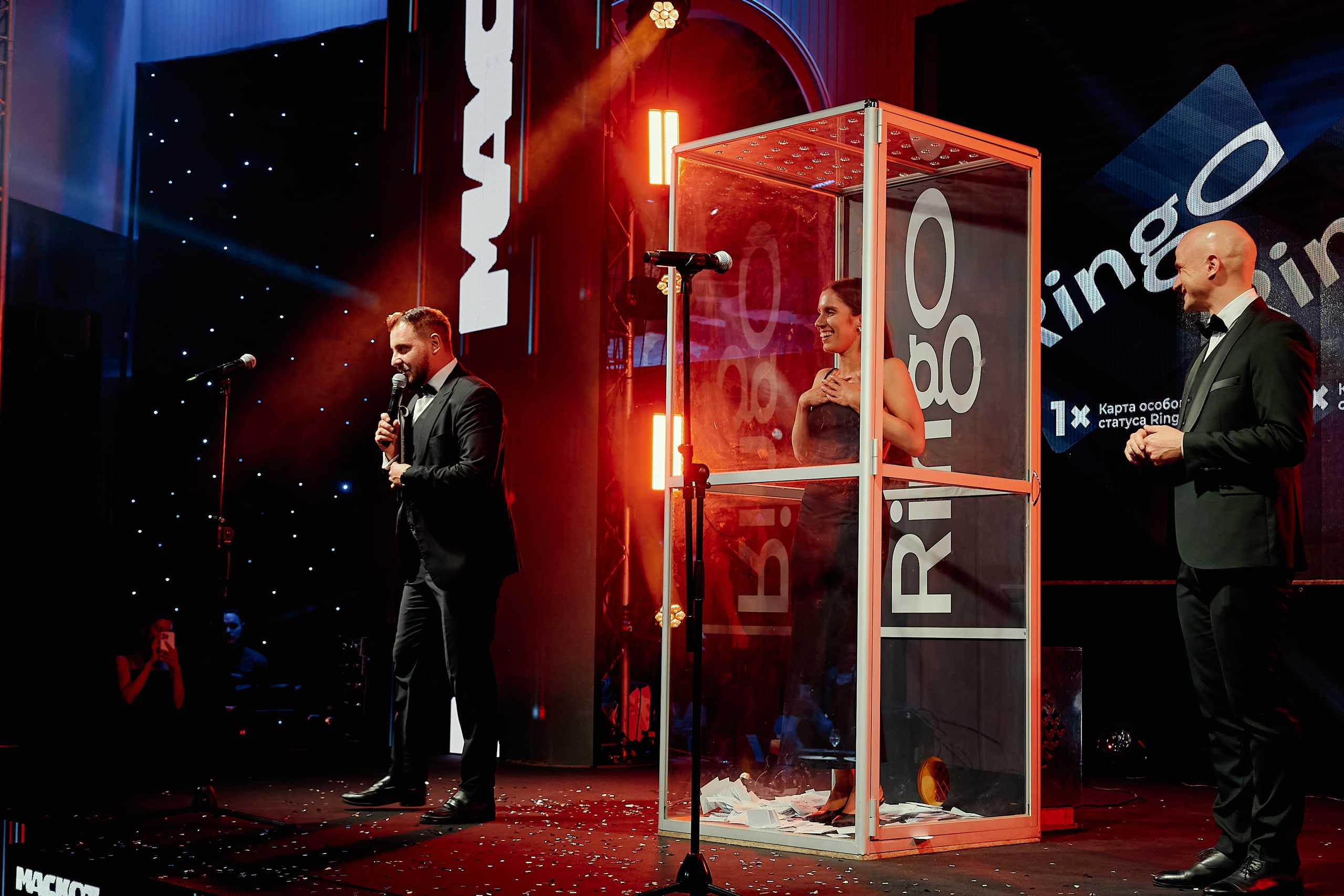 Отдельно прошёл розыгрыш специальных призов, которые особенно понравятся тем, кто задумывается о покупке автомобиля с помощью финансирования! Партнёр премии «Маскот» — группа компаний Ringo — подготовила специальные карты особого статуса, которые позволяют приобрести авто с пробегом в лизинг на срок до пяти лет без платежей по лизинговой ставке в рамках лимитированных сумм. Больше о возможностях карт можно узнать здесь. Розыгрыш проводил директор Ringo Павел Шнейдер.