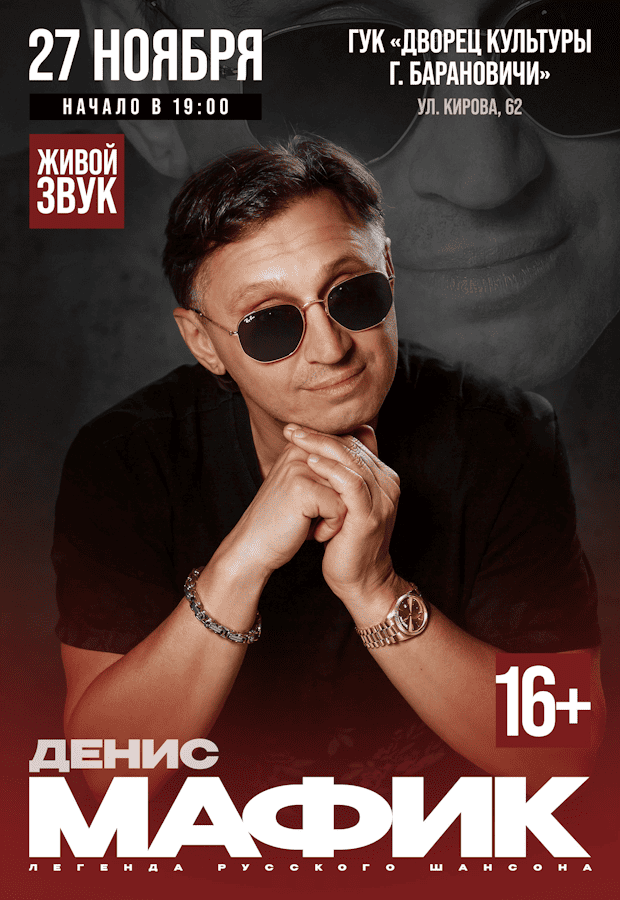 Концерт Дениса МАФИКА в Барановичах 27.11.2025 отменен по независящим от артиста и организатора обстоятельствам.