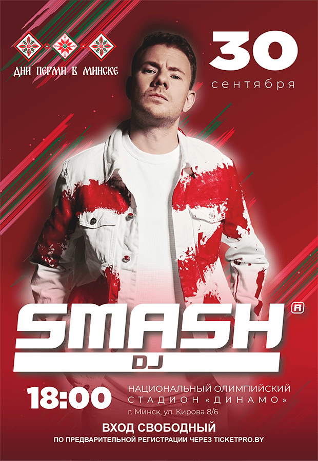 30 сентября в 18:00 на концертной площадке выступят белорусские артисты и специальный гость – легендарный DJ Smash! Его сет станет кульминацией вечера и завершением Дней Перми.