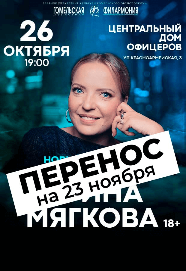 Концерт Ирины Мягковой, запланированный к проведению 26.10.2025 в Центральный дом офицеров, Минск ПЕРЕНЕСЕН на 23.11.2025.
