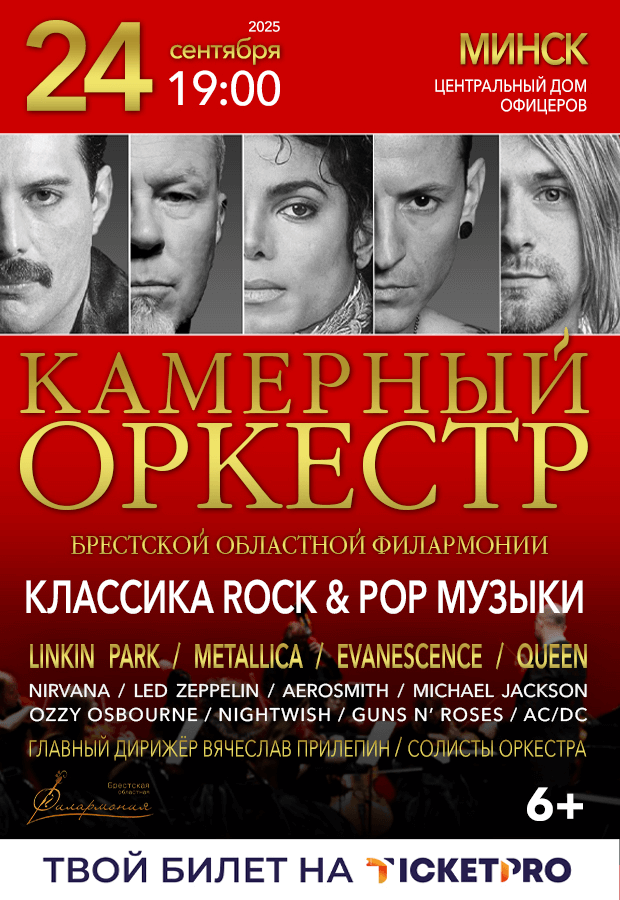 Классические хиты мировой рок- и поп-музыки в уникальной аранжировке — звучат в исполнении камерного оркестра Брестской областной филармонии под управлением главного дирижёра Вячеслава Прилепина.
