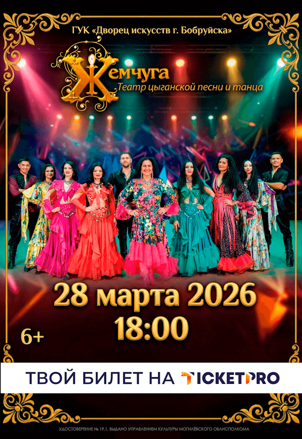 28 марта во Дворце искусств г. Бобруйска снова выступит театр цыганской песни и танца «Жемчуга» — и мы уверены, что этот вечер станет одним из самых ярких событий сезона!