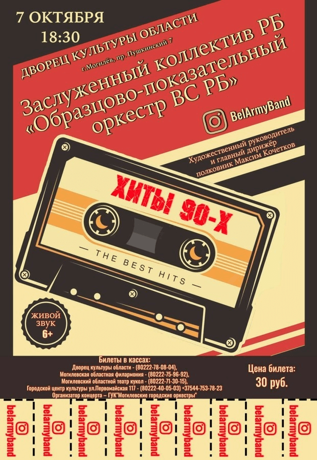 7 октября 2025 года в 18.30 состоится концерт Заслуженного коллектива Республики Беларусь "Образцово-показательный оркестр ВС РБ" с новой программой "Хиты 90-х".
