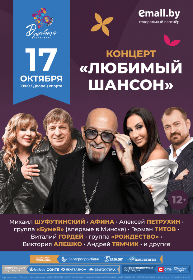 Осень в Минске оживает с Душевным фестивалем! 17 октября в 19:00 во Дворце спорта пройдёт концерт «Любимый шансон», который соберёт на одной сцене самых известных исполнителей жанра. Зрителей ждёт тёплая атмосфера, наполненная любимыми песнями и яркими эмоциями.