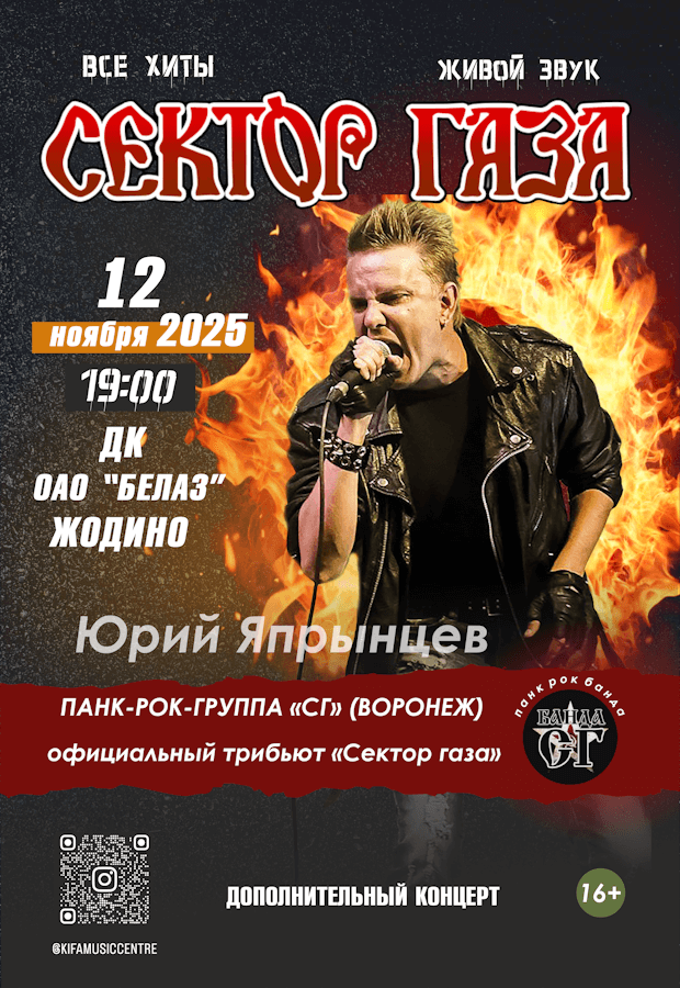 Концерт Панк-рок-группы ''С.Г.'' Юрий Япрынцев ''Хой'' Все хиты ''Сектор газа'', запланированный к проведению 12.11.2025 года, ОТМЕНЕН.