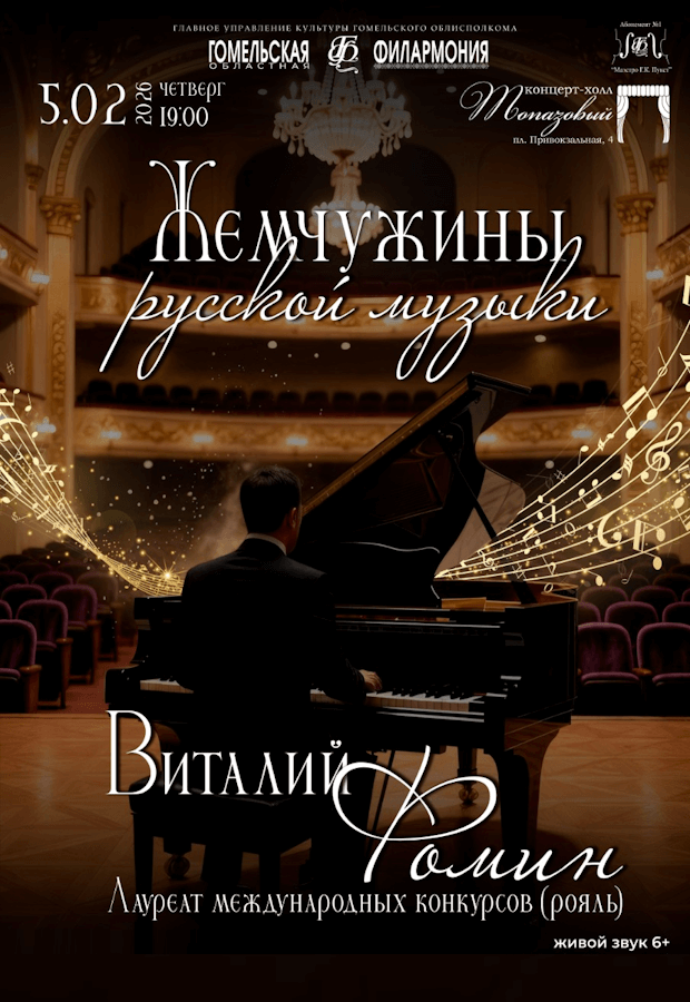 Независимо от места приобретения билетов возврат производит организатор мероприятия - Гомельская областная филармония. Инфолиния по возврату билетов: +375 (44) 707-83-85. E-mail: info@gomelfil.by. Возврат билетов осуществляется не позднее 3 февраля 2026 года включительно в размере 75 (семидесяти пяти) процентов от стоимости билета. Сервисный сбор билетного оператора не возвращается, т.к. услуга по продаже билетов считается оказанной.