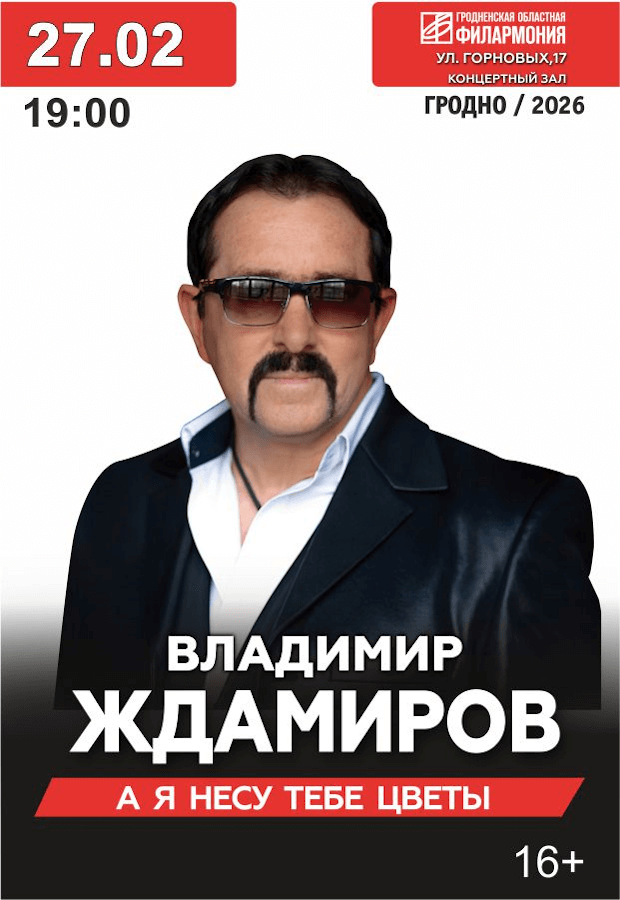 Концерт "Владимир Ждамиров", запланированный к проведению 18.02.2026 ПЕРЕНЕСЕН на 27.02.2026. Все билеты будут действительны, обменивать их не нужно.