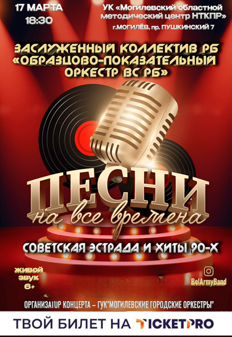 Заслуженный коллектив Республики Беларусь "Образцово-показательный оркестр Вооруженных Сил Республики Беларусь" с программой ПЕСНИ НА ВСЕ ВРЕМЕНА (советская эстрада и хиты 90-х)