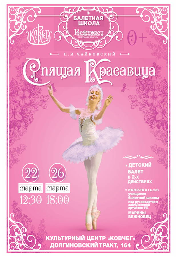 Детский балет «Спящая красавица» – это двухактный балет балетной школы под руководством заслуженной артистки Республики Беларусь Марины Вежновец.