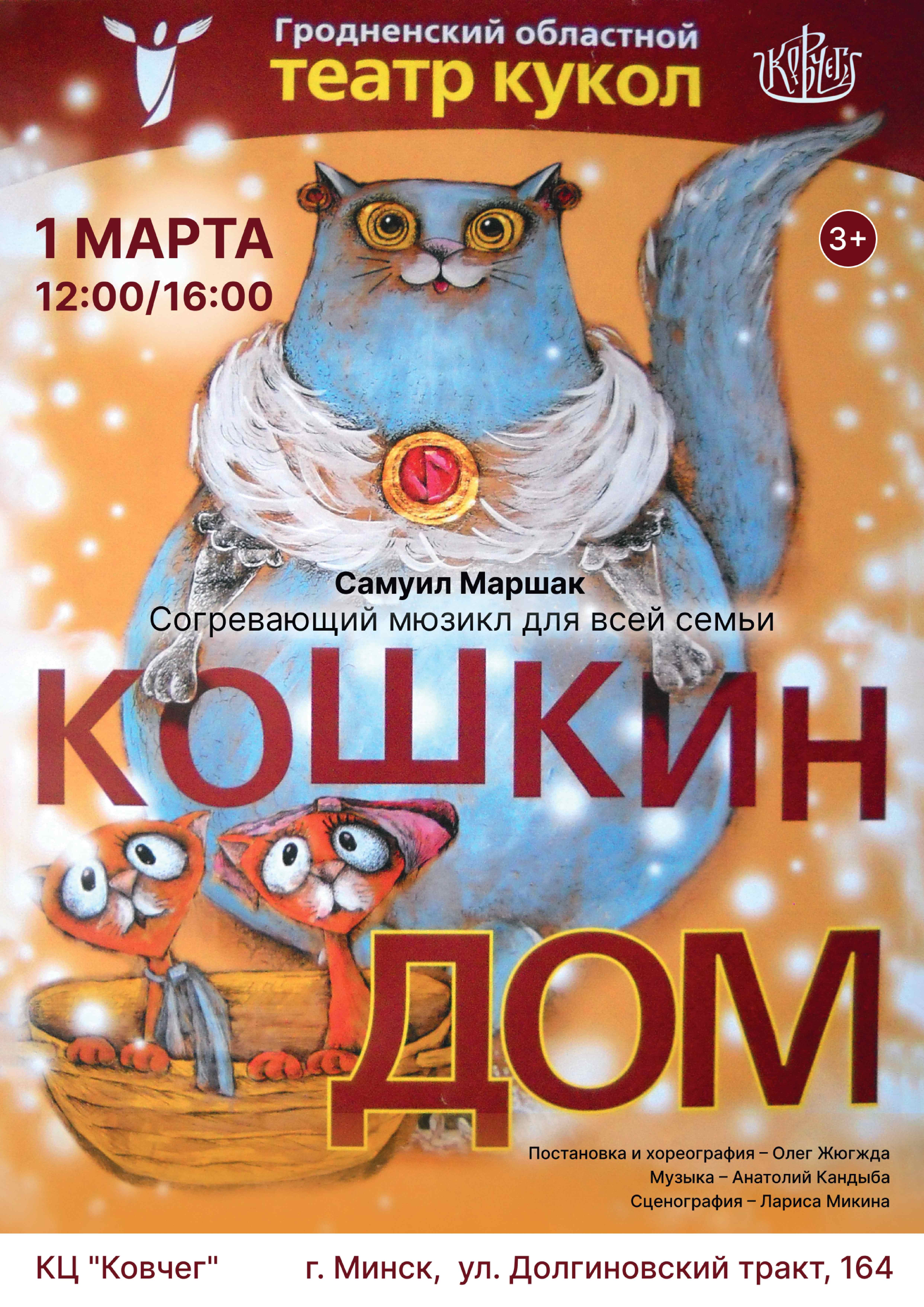 Держитесь крепче: классика детской литературы врывается каскадом музыки и танцев в нашем новом мюзикле! Знаменитый сюжет Самуила Маршака о «Тёте Кошке» и ее племянниках Гродненский областной театр кукол перенес в сатирический мир гламурного кошачьего поселка, где каждый «белый и пушистый»… пока не случится беда. Яркий и живой, этот мюзикл моментально разжигает в маленьких и больших сердцах главный огонь — огонь любви и сострадания.