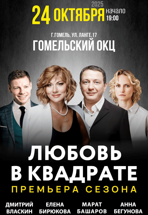 Спектакль "Любовь в квадрате", запланированный к проведению 24.10.2025 года, ОТМЕНЕН.