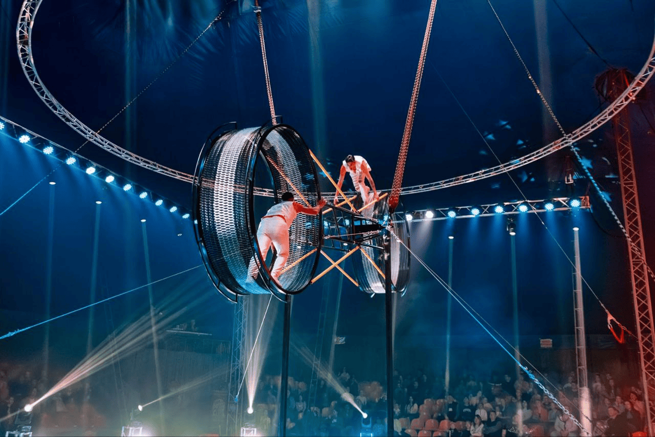 Вас ждет совершенно новая концепция нашей новогодней программы. Зрительный зал будет превращен в цирковой амфитеатр, а новое размещение манежа и зон экстрима в центре арены позволит зрителям увидеть все детали шоу и сделать просмотр программы комфортным. Каждый сможет ощутить и проникнуться атмосферой Новогоднего Карнавала, которая зарядит волшебным праздничным настроением. Зрителей ждут эксклюзивные номера и захватывающие трюки, которые не оставят равнодушными ни маленьких, ни взрослых. В новогоднем шоу примут участие только лучшие артисты из Южной Америки, России, Грузии и Беларуси с уникальными номерами уровня мировых шоу в Монте-Карло и Лас-Вегасе и Цирка дю Солеи. Вас ждут такие номера как: воздушные гимнасты, эквилибр, жонглеры, акробатическая дорожка, дрессированные животные, массовые акробатические танцевальные номера, где одновременно на площадке будет находиться более 50 человек. Особым событием станет выступление артистов-каскадеров с номерами Колесо смелости и давно полюбившийся и захватывающий дух Мотошар.